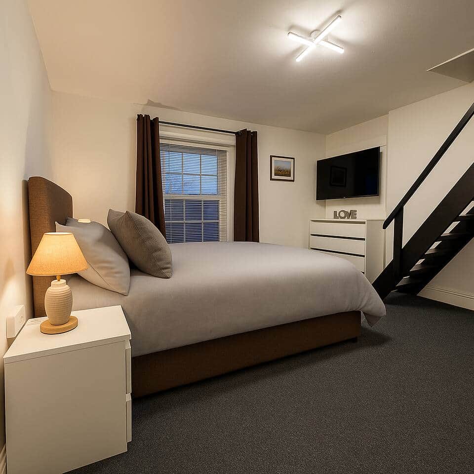 This bright and comfortable private family room can sleep 4, it offers a centrally located relaxing base to unwind after a day at the beach or exploring the Dorset coast. Thoughtfully furnished with hot drink facilities, TV, Phone Ports,and plenty of storage, together with it’s en-suite and ironing facilities it’s perfect for solo travelers, couples, or professionals visiting the area. Bright, Central Private Room in a traditional self service town house with En-Suite – Ideal for Beach Days & Exploring Dorset Welcome to your relaxing retreat in the heart of town—perfectly located for exploring the stunning Dorset coast or enjoying a day at the beach. Just steps away from a vibrant selection of bars, restaurants, and shops, this cozy and thoughtfully furnished private room offers the perfect base for solo travelers, couples, or professionals. Enjoy a restful night in a comfortable bed with soft linens, and take advantage of convenient amenities including an en-suite bathroom, hot drink facilities, TV, phone charging ports, ample storage, and ironing equipment. While the lively sounds of the town may add a touch of energy to your stay, you’ll have everything you need to unwind in comfort after a day of adventure. Please note that all rooms are made up with double beds, if you require two singles please notify us 24hrs prior to your arrival. We operate a digital check in/out service, if assistance is required during your stay please message us directly on this platform Room 4 consists of a double en-suite room that benefits from an added loft room with two single beds which is perfectly suited for children Centrally located in the heart of Weymouth, 5 minutes from the Train Station with on street parking outside and car parking facilities only a few minutes away in Commercial Road this is an ideal location for the many bars, eateries with the beach a stones throw away, Next door we have Weymouths's Smallest Micro Pub, how pubs used to be. Real ales directly from the cask, traditional ciders, mead, gins, other spirits and European Wetherspoon’s is also along the road, along with Finns and many food establishments.